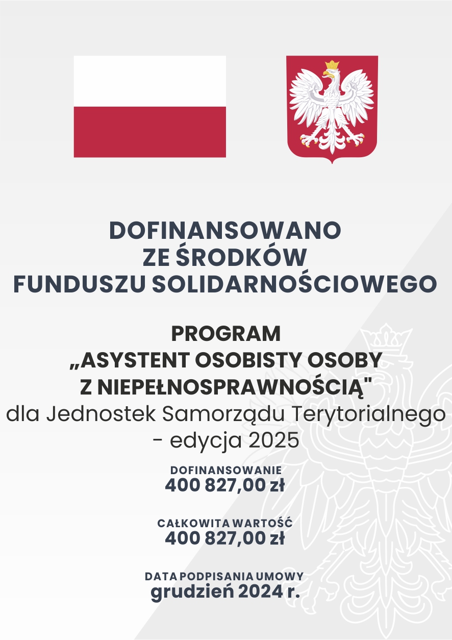 Ośrodek Pomocy Społecznej w Gołdapi informuje, iż Ministerstwo Rodziny, Pracy i Polityki Społecznej przyznało Gminie Gołdap środki na realizację Programu pn. „Asystent osobisty osoby z niepełnosprawnością” dla Jednostek Samorządu Terytorialnego − edycja 2025 finansowanego ze środków Funduszu Solidarnościowego.